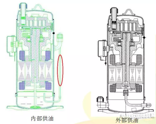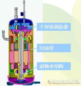 渦旋COPELAND壓縮機(jī)內(nèi)部的油路: