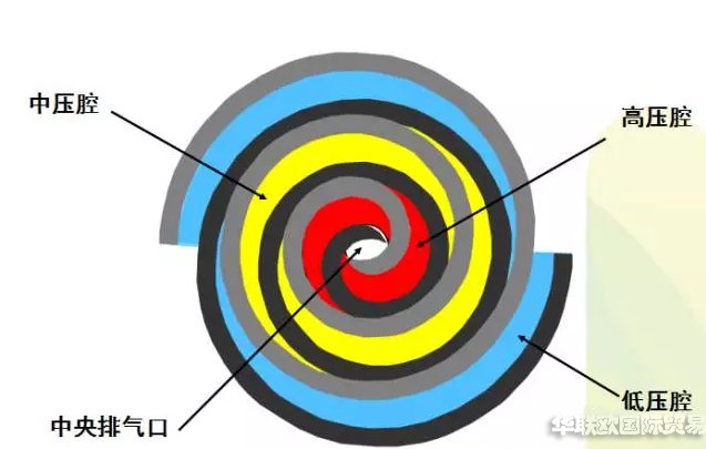 連續(xù)不斷的吸、排氣;渦盤左右兩側(cè)同時進(jìn)行壓縮。
