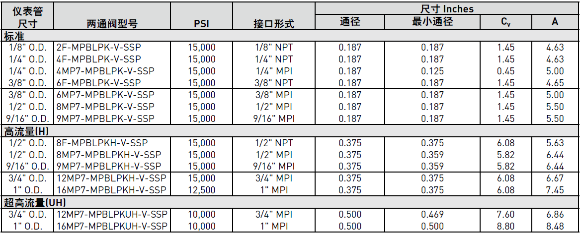 PARKER球閥MPB系列兩通產(chǎn)品參數(shù):