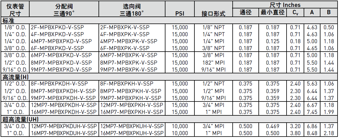 PARKER球閥MPB系列三通產(chǎn)品參數(shù):