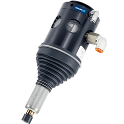 SCHUNK去毛刺主軸FDB-AC系列用于機器人手臂上或作為固定單元,具有高進給速度。在直型和90°型中,裝置以高達30000rpm的轉(zhuǎn)速由氣動主軸驅(qū)動。為了能遵守機加工輪廓的公差,主軸為軸向安置。銑刀頭處的最大距離為±9mm。移動(軸向)主軸需要力(硬度)。其受第二個空氣接口控制。根據(jù)壓力不同,作用于銑削表面的力為1N至25N。